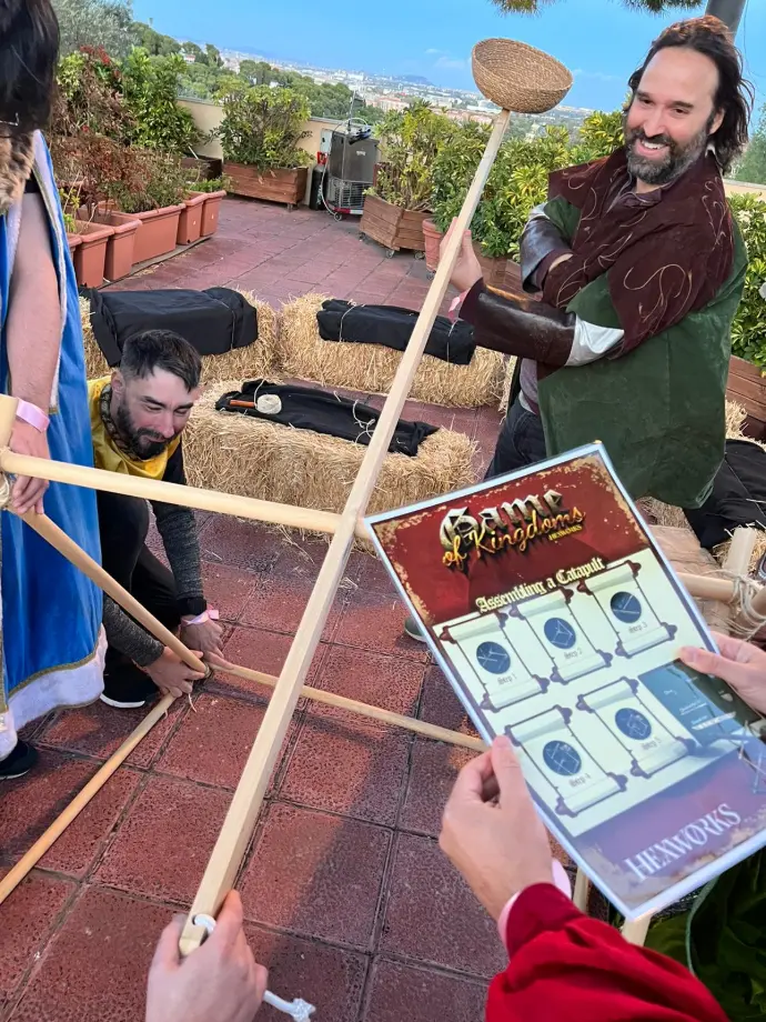 Evento tematizado para 100 personas en el Hotel Don Jaime de Castelldefels. El programa se llama "Game o Kingdoms" y todas las actividades tienen relación con el medievo. Construcción de catapultas infernales, resolución de retos y desafíos a través de un codex, ...todo personalizado para hacer de la experiencia algo inolvidable.